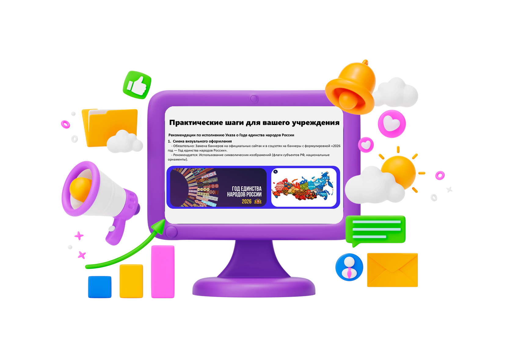 На вебинаре вы получите не только актуальную информацию, но и практические рекомендации по адаптации вашей деятельности: как обновить сайты и баннеры, создать тематические разделы, спланировать мероприятия и эффективно взаимодействовать с аудиторией в контексте объявленного Года единства. Присоединяйтесь, чтобы вместе подготовиться к сложному, но важному году, полному возможностей для развития и укрепления гражданской солидарности.